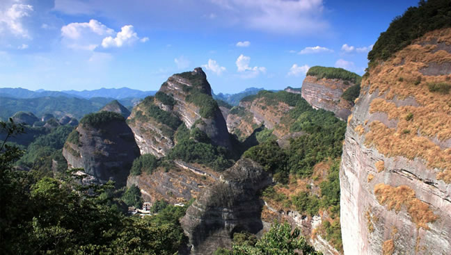 八角寨地處湘桂交界的、五嶺山脈里最長者越城嶺山脈(長達(dá)二百多公里)西北側(cè)的余脈(廣義崀山即以崀山為代表的跨越新寧縣和資源縣的整條山或大崀山),屬典型的丹霞地貌,有關(guān)專家譽為“丹霞之魂、國家瑰寶 ”,“中國最美的七大丹霞”之一。