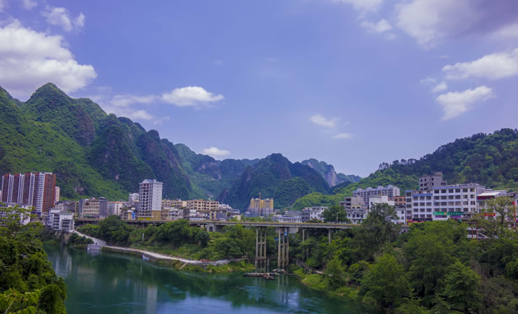 天峨縣,隸屬?gòu)V西壯族自治區(qū)河池市,位于廣西壯族自治區(qū)西北部,紅水河上游?h境東西長(zhǎng)約77千米,南北寬約95千米。總面積3196平方千米。天峨縣是國(guó)家、廣西林業(yè)重點(diǎn)縣,全縣森林面積22.9萬(wàn)公頃,森林覆蓋率達(dá)82.6%,素有“森林王國(guó)”“綠色寶庫(kù)”之稱,野生植動(dòng)物資源種類繁多;紅水河流經(jīng)縣境112千米,水資源占紅水河流域總蘊(yùn)藏量45%。全縣轄2鎮(zhèn)7鄉(xiāng),其中瑤族鄉(xiāng)1個(gè),居住著壯、漢、瑤、侗、苗、毛南、布依、仫佬、水等20個(gè)民族。天峨縣常住人口為143155人。