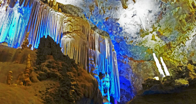 水晶宮位于縣城西北的那社鄉(xiāng)大洛村牛洞屯,距縣城約等43千米,交通便利。水晶宮發(fā)育在峰叢洼地谷地巖溶地貌區(qū),地形起伏大,洞口位于巖溶峰簇的山坡上,高出現(xiàn)代侵蝕面約150米。 水晶宮以潔白純凈、密集分布的石毛發(fā)、卷曲石、石花等景觀為顯著特色,珍惜景觀。洞內(nèi)空氣負氧離子含量很高,達到每立方厘米36000-70000個,為洞外的5-10倍。 水晶宮為廊道狀的中型洞穴,洞穴基本上順巖層層面面發(fā)育,除數(shù)處大廳外,總體上洞道高低起伏不大。據(jù)初步調(diào)查,水晶宮的長度總長度1000多米,寬8至50米,高10至80米。洞底局部有軟式和細沙土沉積物。水晶宮內(nèi)的鐘乳石類有重力水趁機累的鵝管、鐘乳石、石筍、石柱、石帶、石旗和各類石幔、石瀑布、石盾等;非重力水晶沉積類的石毛發(fā)、卷曲石、石花等數(shù)十種,形態(tài)多彩多姿,雪白純凈,玲瓏剔透,集天下藝術珍品于一洞,且正在生長之中,極具觀賞價值和科學探究價值。