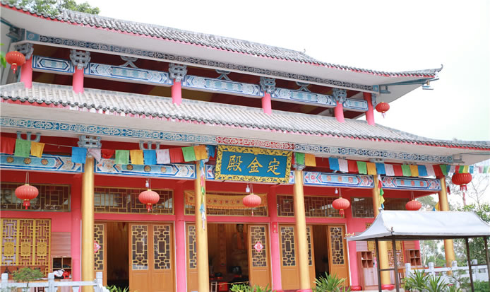 定金山禪寺位于定金山上,定金山禪寺由此得名。定金山禪寺是當時田州周邊的一大名寺,在20世紀初土改時一度被撤。后又在60年代的“文化大革命”破“四舊”的政治運動中再度被毀。80年代后期,定金山禪寺由群眾集資再度重建。建成的定金山禪寺以其規(guī)模宏大、殿堂巍峨、道場清凈成為當今巴馬的一座名寺,每逢農(nóng)歷的月初一和十五,定金山禪寺香客絡繹不絕,香火不斷,成為巴馬的一道獨特的旅游風景線。