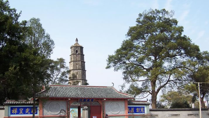 瑞光塔位于富川瑤族自治縣縣城南郊約500米富江西畔的急轉(zhuǎn)彎處。因塔內(nèi)曾供有陰刻雕觀音像,俗稱觀音塔、觀音閣。 塔為7層樓閣式六角形磚塔,高28米,塔基埋深4.8米,塔尖有重達(dá)400公斤的銅剎蓋頂。各層皆有一門,依次順時針變化門向。頂層六面有窗。塔內(nèi)有螺旋式磚梯78級,可直達(dá)頂層。登塔遠(yuǎn)眺,可觀“富川八景”中的“三景”:“富水奔濤”、“層巒聳翠”和“山泉飛瀑”。塔下林木成蔭,玉泉清冽,環(huán)境十分幽雅。