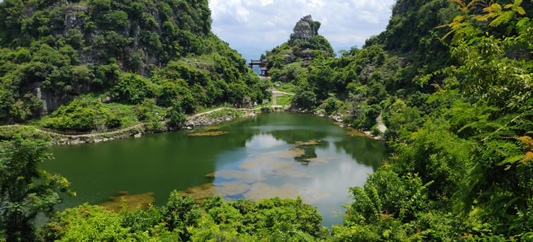 “八仙天池”(又稱:“八仙山”、“八仙寨”),是全國(guó)三個(gè)天池之一,1988年經(jīng)自治人民政府批準(zhǔn),列為自治區(qū)級(jí)風(fēng)景名勝開(kāi)發(fā)保護(hù)區(qū)。距武宣鎮(zhèn)6千米的大山峽村八仙山。山體呈圓形,面積2平方千米,山體313米高程,四周環(huán)列八座山峰,在高出地面127米的山腰中有一池天然碧水,似“八仙托玉盤”,故稱:“八仙天池”。天池長(zhǎng)約150米,寬100米,水深10米。又名:“八仙潭、龍?zhí)丁⑾珊、神秘?rdquo;。八仙山四周空蕩,雨不盈,旱不闊,水清無(wú)塵,味甘可飲。