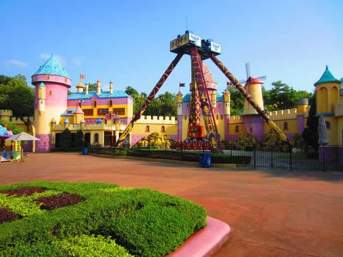夢(mèng)幻世界區(qū)是以西洋童話中的夢(mèng)幻仙境為主題。這里的建筑多呈不規(guī)則形狀,將一些娛樂(lè)、服務(wù)設(shè)施裝飾成大樹(shù)、蘑菇等奇特造型。該區(qū)主要的游樂(lè)設(shè)施有: