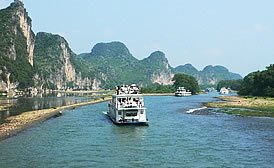 主要路線為桂林磨盤山碼頭或竹江碼頭——陽(yáng)朔段航線,是漓江航區(qū)的精華部分。沿途景點(diǎn)有:冠巖、童子拜觀音、九馬畫山、黃布倒影等。游覽時(shí)長(zhǎng)4.5小時(shí)左右。