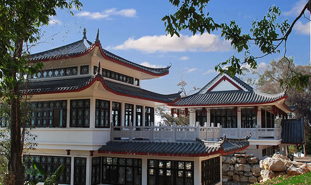 梁羽生公園坐落在蒙山縣城區(qū)東南角的鰲山上,始建于2005年10月,占地60多畝。園名為武俠小說作家金庸題書,大門兩邊有鄺健行教授撰、馬國權(quán)先生書寫的對聯(lián):“舉世陳言始著新文開俠統(tǒng);一園生意爭鳴翠羽繞雕梁”。山上原建有一座五層寶塔,蒙山人習(xí)慣稱作文筆。
