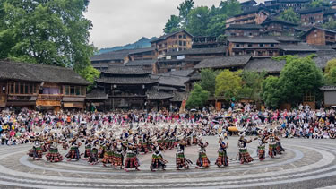 每天上午和下午各有一場由西江千戶苗寨苗族同胞表演的民族歌舞節(jié)目,苗族人表演的歌舞節(jié)目有當?shù)氐纳,華麗的服飾、歡快的歌舞和美麗的愛情故事。苗族古歌演唱,演唱者全是寨中的老人,用苗族古語演唱其史詩般宏大的古歌(苗族古歌有四部分,涵括萬物起源、天地洪荒及辛酸遷徙史等)。遇到特別活動或是有重要人物出現(xiàn),還是能夠看到掌坳的銅鼓舞、方祥的高排蘆笙、反排的木鼓舞等。