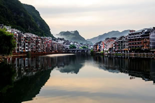 鎮(zhèn)遠(yuǎn)古鎮(zhèn),位于貴州省黔東南苗族侗族自治州鎮(zhèn)遠(yuǎn)縣,河水蜿蜒,以“S”形穿城而過(guò),北岸為舊府城,南岸為舊衛(wèi)城。兩城池皆為明代所建,現(xiàn)尚存部分城墻和城門(mén)。城內(nèi)外古建筑、傳統(tǒng)民居、歷史碼頭數(shù)量頗多。