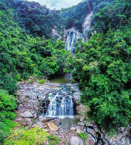 紅坎瀑布位于白沙黎族自治縣元門(mén)鄉(xiāng)東南部,距縣城24公里處。 紅坎瀑布總落差145米。瀑布源于海拔1101米的紅坎嶺,兩岸峰巒矗立,絕壁橫陳,溶巖密布。