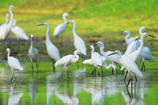 鷺鷥天堂位于海南省屋基村。村中三、四層樓高的三棵大榕樹(shù)和茂林修竹,成為萬(wàn)只白鷺生活的"天堂"。白鷺又稱鷺鷥,屬鳥(niǎo)綱鶴形目鷺科,是世界上受保護(hù)的珍禽之一。白鷺群棲于屋基村已有多年。每年臨近清明成群結(jié)隊(duì)飛來(lái),12月以后分批離去,在此生活八、九個(gè)月之久。為便于觀鳥(niǎo),村中修建了高達(dá)6層的觀鳥(niǎo)樓。
