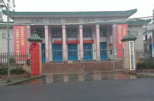 中山紀(jì)念堂為紀(jì)念民主革命先行者孫中山先生而建,位于中山街道辦事處文明西路19號,民國十五年(1926年)建成,是全國最早的孫中山紀(jì)念堂。1964年重建,占地面積1500平方米,建筑面積700平方米,建筑布局為坐北朝南,呈方形,前有庭院,左右兩側(cè)各有花池1個(gè),沿7級混凝土臺階拾級而上到達(dá)主體建筑。紀(jì)念堂為綠色琉璃瓦,堂頂飛檐,正面堂檐橫匾鐫刻堂名,整體結(jié)構(gòu)為中西結(jié)合風(fēng)格,是?谑、海南行政區(qū)承辦各種重要活動(dòng)的場所,?谑械谝粚萌嗣翊泶髸(huì)在此召開,現(xiàn)為?谑星嗌倌晁枷氲赖陆逃娪胺庞郴。