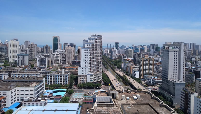 地形地貌 龍華區(qū)地處臺地和平原,絕大部分地區(qū)海拔在100米以下,地形略呈長心形,地勢西部、東南部較高,中部、北部低平。轄區(qū)地表主要為第四紀(jì)基性火山巖和第四系松散沉積物大面積分布,濱海以濱海臺階式地貌為主,西部以典型的火山地貌為主。南渡江流經(jīng)的東部邊界,沿岸低平,北部多為沿海小塊平原。