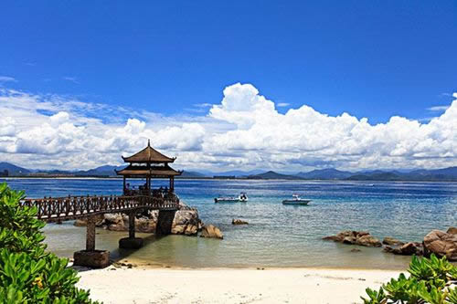 亞龍灣是海南省三亞市東郊的一處優(yōu)質(zhì)熱帶海濱風(fēng)景區(qū),沙灘平緩開闊,沙粒潔白細軟,海水清澈澄瑩,海底資源豐富,生長眾多原始熱帶植被,頗具熱帶海島風(fēng)情。海灣距離市中心區(qū)約10公里,以野豬島為中心,南有東洲島、西洲島,西面有東排、西排,可開展多種水上運動。