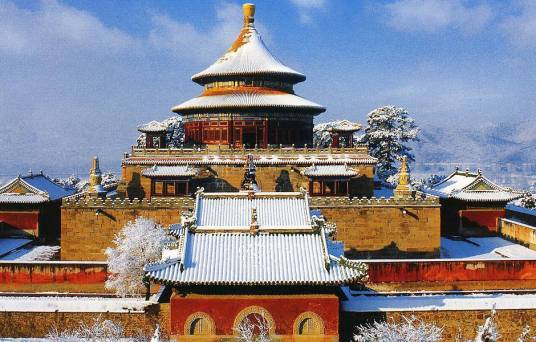 避暑山莊周圍的喇嘛教寺廟群是依照西藏、新疆喇嘛教寺廟的形式修建的,以供邊疆少數民族的貴族朝覲皇帝時禮佛之用。共12座,其中的8座由清政府直接管理,故被稱為“外八廟” 。廟宇按照建筑風格分為藏式、漢式和漢藏結合式三種,它們融合了漢、藏等民族建筑藝的精華,氣勢宏偉,極具皇家風范。這些風格各異的寺廟是當時清政府利用宗教作為籠絡手段來團結蒙古、新疆、西藏等地區(qū)少數民族而修建的。它們多利用向陽山坡層層修建,主要殿堂聳立突出、雄偉壯觀。