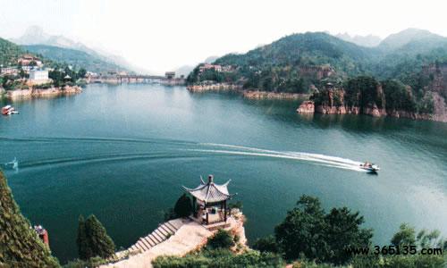 太行三峽—京娘湖 東太行山武安市京娘湖,據(jù)馮夢龍編《警世通言》記載,宋太祖趙匡胤千里送京娘曾路宿于此山中。京娘是山西永濟人,年方十七歲, 隨父母去曲陽燒香還愿遭劫,幸遇趙匡胤拔刀相救,千里護送,京娘感恩不盡,欲以終身相托。然而趙曰:“賢妹非是俺膠注鼓瑟,本為義氣千里相送,今若就私情與那個響馬何異?況施恩圖報非君子所為 。”京娘道:“恩兄高見,妾今生不能補報大德,死當銜環(huán)結草。 ”于是京娘投湖自盡,(后被追封為貞義夫人)京娘湖亦由此得名。 湖面呈倒“人”字型,分東西兩支,水面2445畝,水深20-50米。中間 山島建有“山頂公園”清山綠水與藍天白云相互輝映,薈萃人典故, 使此地有“太行三峽”之美稱,尤其是巖壁上當年趙匡胤“云崖寄志 ”的題詞手跡“欲出未來光辣撻,千山萬水如火發(fā)。須臾走向天上來 ,趕卻殘星趕卻月”。及其它歷史傳說,使景區(qū)更加神秘誘人。這里 層巒疊嶂,群峰竟秀,波光粼粼,林林茂盛。夏季炎熱之時,清爽宜 人,為避暑勝地。