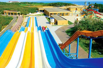 水樂(lè)園1期:超級(jí)大喇叭、高速滑道、六彩滑梯、寶貝水城、螺旋敞開(kāi)滑梯、巨獸碗、沖天大回環(huán)。