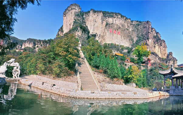 抱犢寨風(fēng)景名勝區(qū)是國家AAAA景區(qū),位于河北省石家莊市鹿泉市境內(nèi),距石家莊市16公里,距首都北京288公里。抱犢寨,舊名抱犢山,古名萆山,是一外集歷史人文和自然風(fēng)光為一體的名山古寨。它東臨華北平原,西接太行群巒,一峰突起,崢嶸雄秀,四周皆是懸崖絕壁,遠(yuǎn)望猶如巨佛仰臥,眉目畢肖。山頂平曠坦夷,有良田沃土660畝,土層深達(dá)66米,異境別開,草木繁茂,恍如世外桃源。有“天下奇寨”、“抱犢福地”、“全國最大山頂園林”等美譽(yù)。其景點(diǎn)均集中在寨頂平臺之上,有全國最大的山頂門坊南天門、道教宮觀金闕宮、全國最大的山頂?shù)叵率裎灏倭_漢堂、華夏第一龍壁千龍壁以及牛郎織女故事的發(fā)祥地——牛郎織女家、天池、天堂街、環(huán)山長城等諸多景點(diǎn);公元前204年漢將韓信曾于此萆山設(shè)伏、背水一戰(zhàn)、大破趙軍,因而寨頂建有韓信點(diǎn)將臺和韓信祠。金末元初,金恒山公武仙曾于此山屯兵建寨,抗擊蒙古軍隊。在道教典籍中,該山被列為“北岳佐命”,明代著名道士張三豐也曾游歷此山,留下了“三豐派”一支脈,至今相傳不絕,宮觀猶存。近年來,景區(qū)大力實施升級改造工程,重修了登山路;開發(fā)建設(shè)了以音樂噴泉、讀月臺、天井飛瀑、彩虹谷、思凡亭等景點(diǎn)為主的鹿隱源生態(tài)新區(qū)。并增加了具有鮮明特色的少數(shù)民族歌舞演出,景區(qū)魅力倍增。