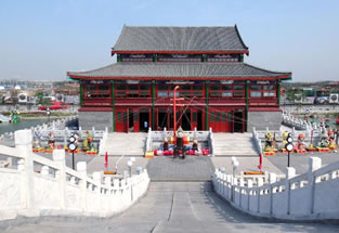 盛樂坊:“盛樂”取自《禮記.月令》,命有司,為民祈祀山川百源,大雩(yu)帝,用盛樂!蚌А,是古代的一種祭禮,說的是古代每到夏季的第二個(gè)月,用盛大的舞樂隊(duì)伍祭祀天地及山林川澤之神,祈求風(fēng)調(diào)雨順,五谷豐登,具有節(jié)日的氣氛。這個(gè)牌坊與對岸的大戲樓遙相輝映。