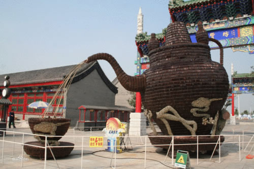 本燈組取材于唐山民俗文化,燈組以茶湯大銅壺為主體形象,古色古韻。茶壺采用特殊材料棕色藥瓶來制作,茶壺倒出茶水時(shí)會有流水追光效果,讓觀眾仿佛能夠聞到茶香四溢。