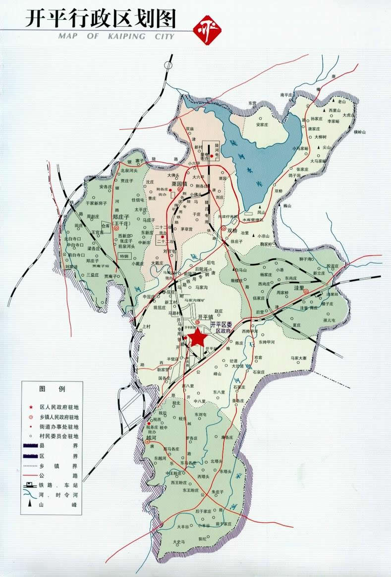 開平鎮(zhèn) 鎮(zhèn)政府駐開平西大街35號(hào)。面積52.79平方千米,人口5.80萬。轄34個(gè)村委會(huì):開平一街、開平二街、開平三街、開平四街、開平五街、開平六街、開平七街、東帥甲河、西帥甲河、馬家大寨、馬家溝、小屈莊、前屈莊、中屈莊、半壁店、大岔道、石泉莊、前陡河、后陡河、耿家營、中八里、東八里、西八里、國各莊、聶各莊、石家莊、豐山、趙莊、上村、后屯、馬路、歡套、陳莊、岔道。