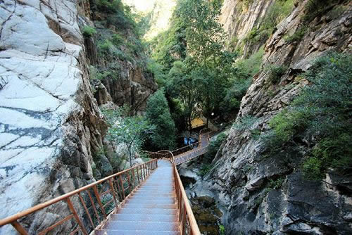 被譽為“天下第一峽”的百里峽是野三坡獨具特色的景區(qū)之一。在“雙崖依天立,萬仞從地劈”的百里“構(gòu)造嶂谷”中,不僅有“老虎嘴”“一線天”“回首觀音”“天生橋”,還有涌泉飛瀑,跌宕聲聲的峽谷溪流和生性好動的小松鼠及山巔枝頭的鳥鳴。生態(tài)環(huán)境原始自然。峽谷內(nèi)旅游設(shè)施與自然相協(xié)調(diào),安全環(huán)保。置身其谷,步游路隨山峰而轉(zhuǎn),溪水繞游路而行,山水相依,植被茂密,空氣清新,世間無比。游在其中,頭頂絕壁萬仞、藍天一線;腳踏鵝卵石甬路,還可足療保健;路邊泉水叮咚、碧水清潭;身旁高山飛瀑、澗流潺潺;崖壁上灌木成林、青檀倒掛懸,獨根草、野海棠和羊齒蘭猶如墨彩涂于壁間,密如綠毯。