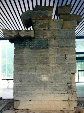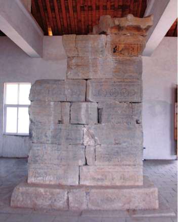 觀星臺(tái)南側(cè)的周公測(cè)景臺(tái)是古代祖先測(cè)量日影、驗(yàn)證時(shí)令季節(jié)的儀器。分臺(tái)座和臺(tái)柱兩部分,臺(tái)座叫圭,臺(tái)柱叫表。夏至日這一天的正午,在測(cè)景臺(tái)的周圍看不到表的影子,所以,稱此臺(tái)為無(wú)影臺(tái)。又因?yàn)闊o(wú)影,我們的祖先就認(rèn)為這里就是地中。