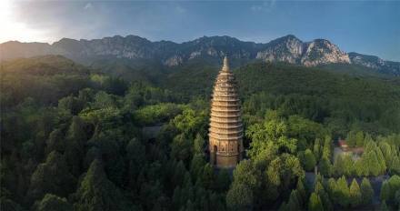 嵩岳寺塔在登封嵩山南麓,是中國(guó)現(xiàn)存最古的密檐式磚塔,建于北魏正光四年(523年)。