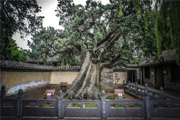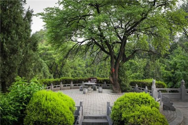 二程手植槐,樹高19.5米,圍粗4米。雖然樹干嶙峋,中空外實(shí),槐冠卻叢撥陰濃,新枝簇簇,樹姿優(yōu)美,老而不衰。相傳為北宋理學(xué)名家程顥到嵩陽(yáng)書院講學(xué)時(shí)親手所栽。