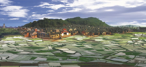 板梁古村落背靠象嶺,面臨溪水,其村落布局充分體現(xiàn)中國傳統(tǒng)風水學崇尚自然、奉行天人合一的自然格局。古村占地約3平方公里左右,現(xiàn)有人口2000余人,至今仍保留著連綿成片的湘南明清古民居建筑360多棟。全村同宗,分上中下三個房系,渾然一體,青石板街巷延綿千米,古民居、古祠堂、清泉、半月塘、 曬谷坪、古驛道、自然田園等有機排序,系統(tǒng)構(gòu)建出“人與人”,“人與自然”、“人與社會”和諧共生的鄉(xiāng)村聚落環(huán)境特色。