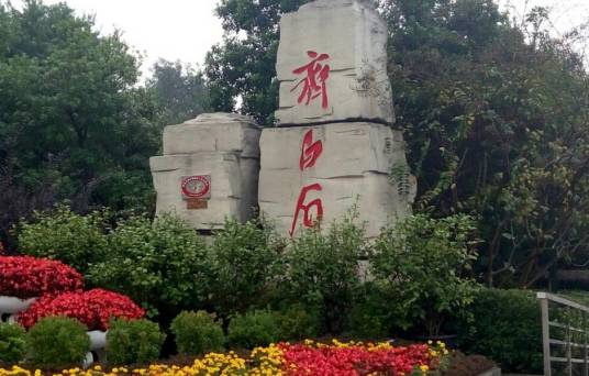 白石公園是紀(jì)念性的文化景觀!叭祟惖募o(jì)念情感通過客觀事物與歷史事件的關(guān)聯(lián)而獲得宣泄”。湘潭是齊白石的故鄉(xiāng),在這里修建齊白石紀(jì)念館和白石公園,一是為紀(jì)念這位讓湘潭人民永遠(yuǎn)驕傲的杰出藝術(shù)家,以表達(dá)人們的敬仰之情;更重要的是借此頌揚(yáng)齊白石的杰出成就和為中華民族乃至世界藝術(shù)和文化所作出的貢獻(xiàn),展示和弘揚(yáng)齊白石不朽的藝術(shù)和文化精神。因此,設(shè)計(jì)師在白石公園的景觀設(shè)計(jì)上主題鮮明突出,在設(shè)計(jì)元素的選擇、處理和景觀符號(hào)的設(shè)計(jì)上頗具匠心。整個(gè)公園從入口到中心再到邊緣,大師的詩、書、畫、印作品被自然地轉(zhuǎn)換成了耀眼的視覺元素和景觀符號(hào),而所有這些景觀符號(hào)都在向人們昭示著大師的不朽藝術(shù)和文化精神。這些設(shè)計(jì)元素和景觀符號(hào)在整體空間安排上,顯隱抑揚(yáng)自如、平和大度,既清晰地突出了齊白石的杰出藝術(shù)成就,又很好地抒寫出了這一特定景觀的文化主題。