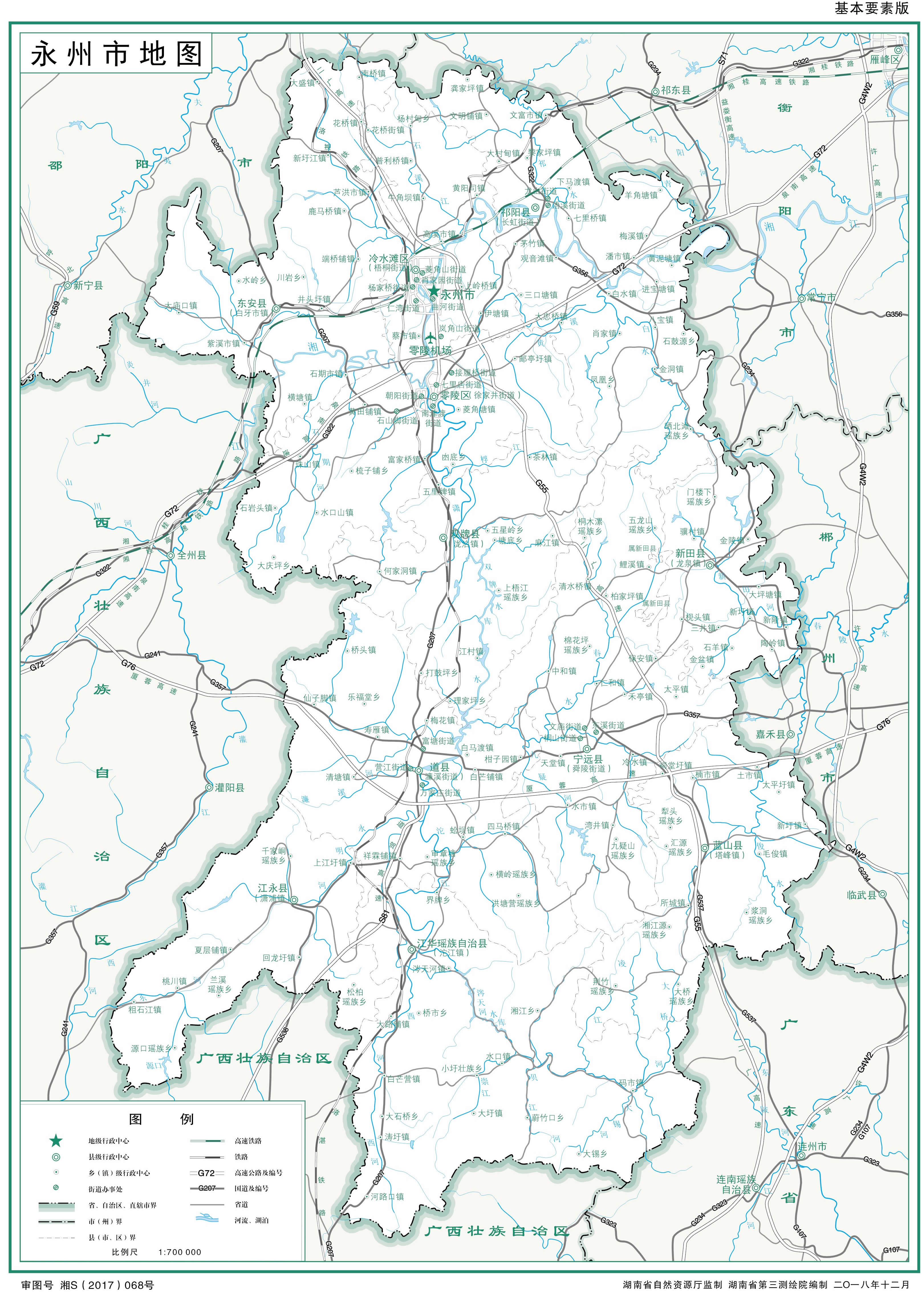 永州東連郴州市,南界廣東省清遠(yuǎn)市、廣西壯族自治區(qū)賀州市,西接廣西壯族自治區(qū)桂林市,北鄰衡陽市、邵陽市。湘江經(jīng)西向東穿越零祁盆地,瀟水自南至北縱貫全境,南北相距最長245千米,東西相間最寬144千米,土地總面積2.24萬平方千米。