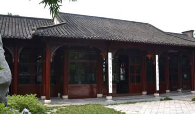 水池的北面是主人用于宴請賓客的宴廳,因廳角昂翹,像振翅欲飛的蝴蝶,故稱蝴蝶廳。廳內(nèi)木壁上刻著歷代名碑字畫。