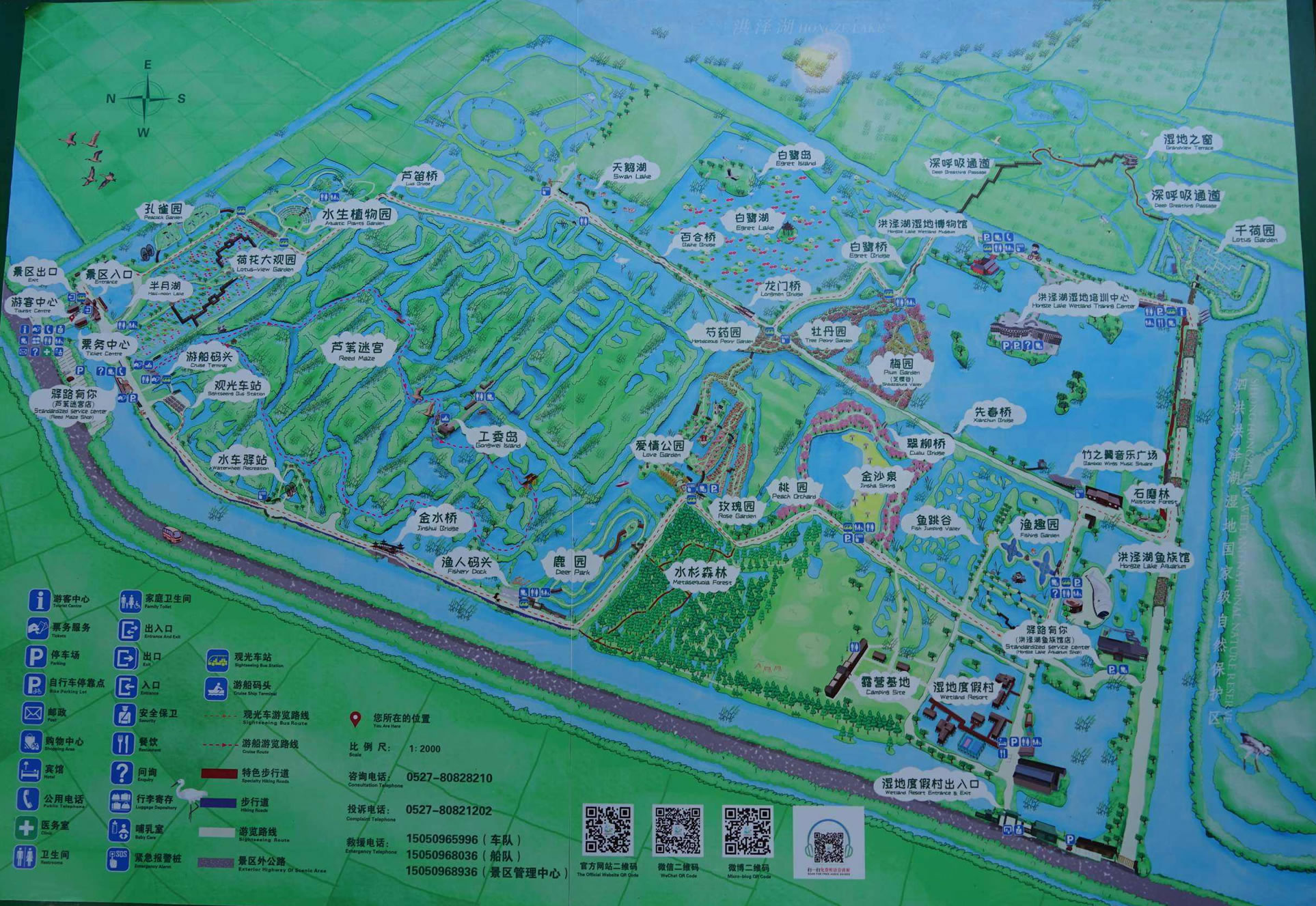 洪澤湖濕地公園由南京大學、南京林業(yè)大學規(guī)劃設計,是泗洪縣充分利用洪澤湖濕地國家級自然保護區(qū)的資源優(yōu)勢打造的集生態(tài)休閑、觀光游覽、科普教育等為一體的旅游景區(qū)。已建成多媒體展示館、濕地生態(tài)博物館、古泗州文化博物館、濕地水族館、濕地景觀立體電影演示廳、荷花大觀園、千荷園、魚類繁育中心、水車體驗區(qū)、垂釣中心、濕地蘆葦迷宮、精品荷花池、主題文化墻等旅游景點,建有水上網球場、沙灘排球場、高爾夫練習場、水上運動中心等健身運動項目,配套建設了金水山莊度假村、游客服務中心、濕地管護中心等服務設施。景區(qū)內湖水浩淼,原野廣袤,荷苑飄香,曲橋蜿蜒,蘆蕩深深,百鳥齊鳴。