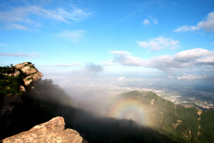 神奇的平流霧猶如仙境,十分壯觀,整個花果山在平流霧若隱若現(xiàn)宛如海市蜃樓,猶如仙境般迷人陽光下大片云海如飄蕩的棉絮,上下翻涌,山巒被浩渺的云海淹沒,汪洋一片,似海非海,把花果山的景色裹得忽隱忽現(xiàn),宛若仙境,云海將這座《西游記》中描寫的“仙山”裝扮得格外迷人,讓游客驚嘆不已。