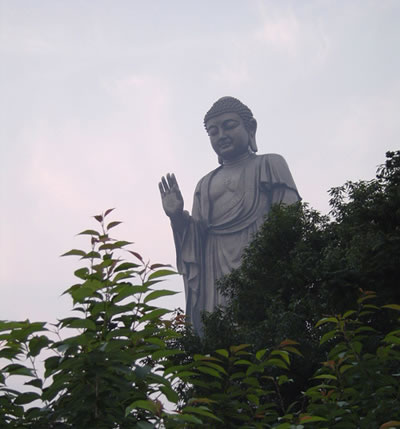 矗立在小靈山南麓的靈山大佛,包括蓮花座在內(nèi)通高為八十八米,相當(dāng)于一幢三十馀層樓房的高度,比“山是一尊佛,佛是一座山”的四川樂山大佛還要高出十七米,是迄今為止我國最高的巨型佛像。如果加上三層座基,總