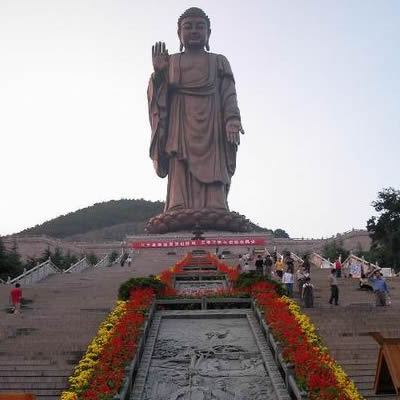 過一段時(shí)間以后,按照工程進(jìn)度,佛腳的銅壁板要移挪現(xiàn)場正式安裝,這里又將空無一物。于是又想出用佛手代表佛腳的辦法。大佛的右手,形狀復(fù)雜又有高度,安裝相當(dāng)困難。但安裝以后,外形卻要好看得多,而且還顯得雄偉壯觀,頗有氣派。游客們的興趣也就更大了,逐漸成為一個(gè)正式的景點(diǎn)。