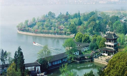 蠡園,離無錫市區(qū)10公里,坐落在蠡湖北岸的青祁村,面積8.2公頃,水面占3.5公頃。園以湖名,湖因園勝,曲岸枕水,秀麗明媚。錯落在綠樹花影中的亭廊橋榭,散發(fā)出水鄉(xiāng)園林的特有風(fēng)姿。