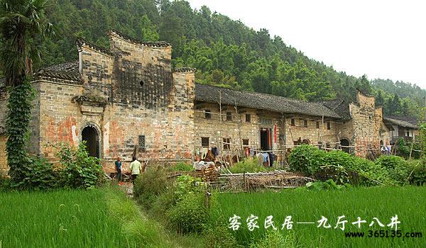 營(yíng)前鎮(zhèn)客家民居:既有北方四合院中規(guī)中矩對(duì)稱(chēng)分布的特點(diǎn),又有南方吊腳樓人字屋頂防潮防風(fēng)的功能,還融入了江南園林建筑中黑白分明的色彩對(duì)比,因而更具有居住的舒適性和使用的實(shí)用性。