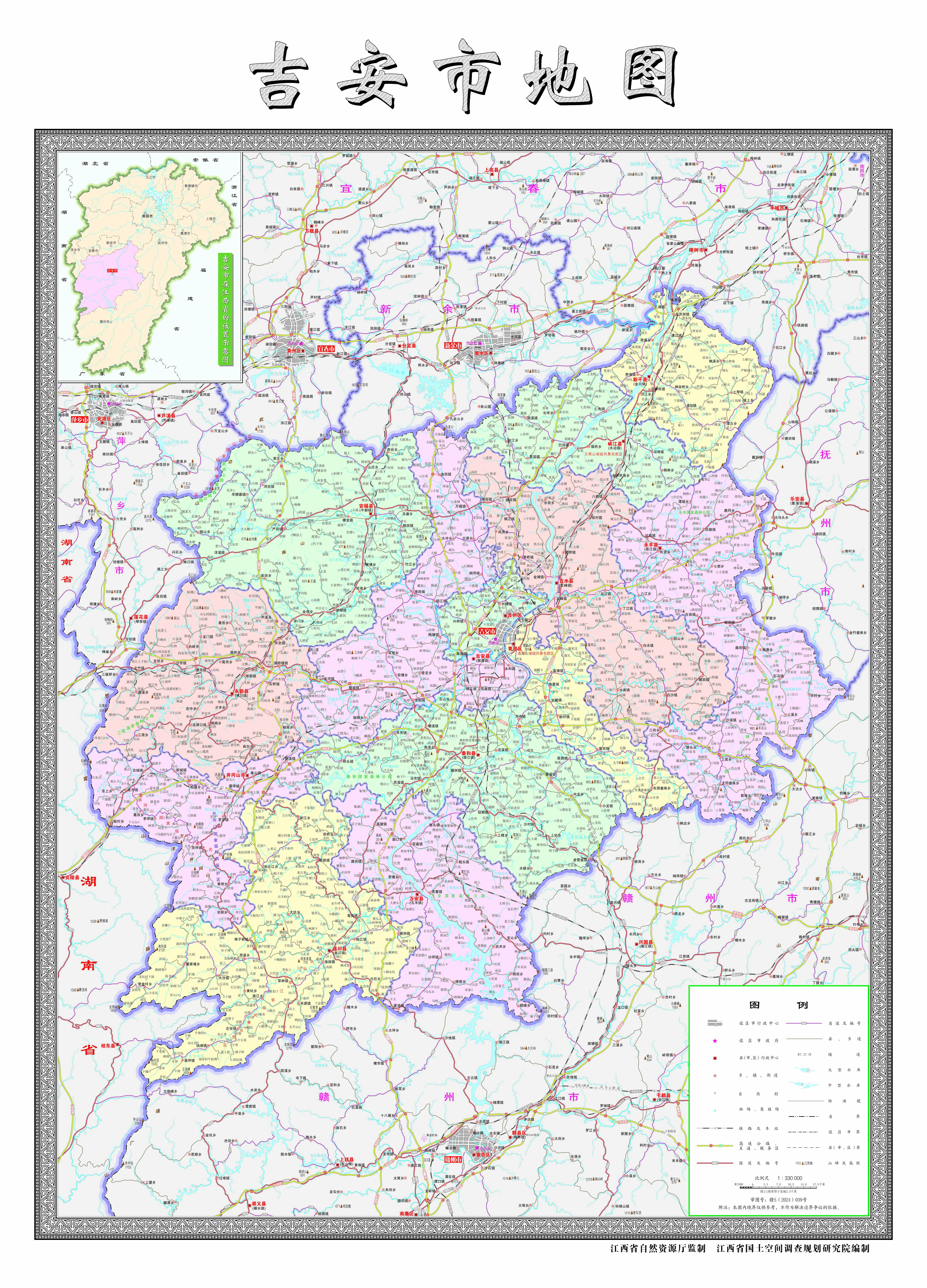 吉安市轄2個區(qū)、10個縣,代管1個縣級市