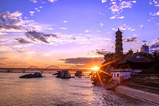 鎖江樓,位于江西省九江市區(qū)東北郊一千米處的長江南岸(九江長江大橋旁)。這里原有一組古建筑,由江天鎖鑰樓(即鎖江樓)、文峰塔(即回龍塔)以及四條鐵牛等許多附設建筑組成,現(xiàn)僅存鎖江樓塔。