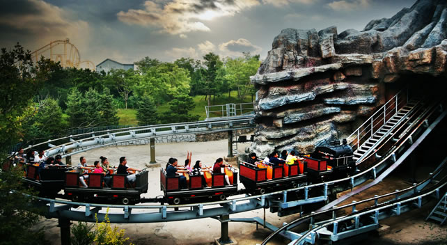 維蘇威火山是大型火山探險(xiǎn)項(xiàng)目,游客乘坐著礦山車(chē)高速穿梭在蜿蜒盤(pán)旋的火山內(nèi),險(xiǎn)象環(huán)生。巨大的轟鳴聲在山體中回蕩,礦山車(chē)快速行駛,車(chē)身大角度傾斜,同時(shí)伴隨著忽明忽暗的快速變化。因車(chē)子是由慣性在軌道上行駛,坐在后排的游客將體驗(yàn)到比前排的游客更為刺激的感覺(jué),而坐在前排的游客將體驗(yàn)到第一個(gè)感受到刺激的感覺(jué)。歷時(shí)170秒左右的驚險(xiǎn)歷程,使你感受到前所未有的刺激,讓你不得不盡情釋放你的歡笑和尖叫。