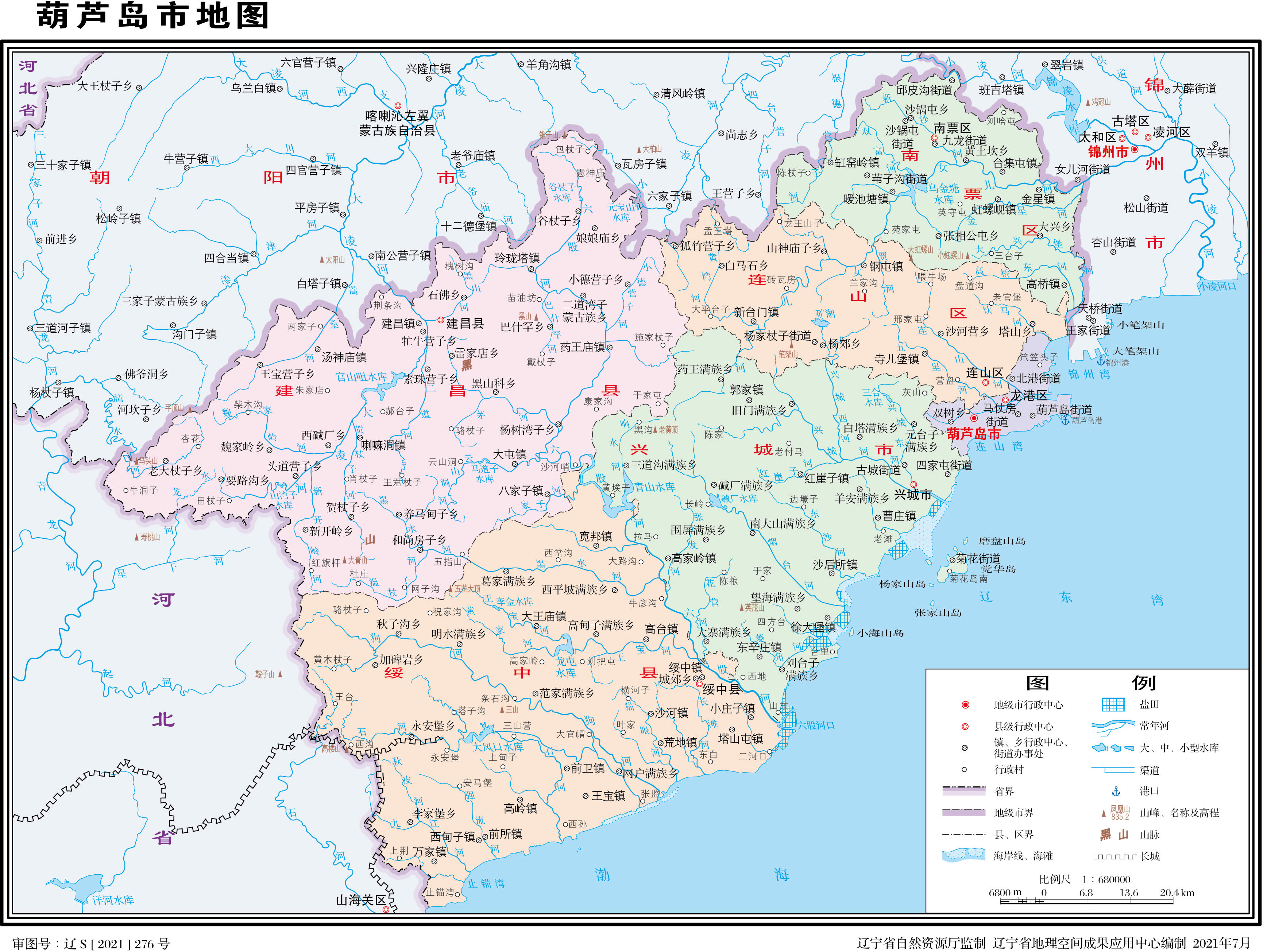 葫蘆島市轄3個(gè)市轄區(qū)、2個(gè)縣,代管1個(gè)縣級(jí)市:
