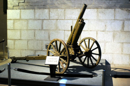 日本九四式山炮:1945年日本其中的戰(zhàn)敗后,其武器、軍備被中國(guó)軍繳獲,其中包括一批九四式山炮。 文革后,一門九四式山炮幾經(jīng)輾轉(zhuǎn),到了沈陽(yáng)軍區(qū)一分部吉林敦化分庫(kù)的軍需倉(cāng)庫(kù)。1997年12月4日,“九一八”事變紀(jì)念館擴(kuò)建辦公室到吉林敦化征集到該山炮及專用炮嘴。1999年9月18日,該九四式山炮及專用炮嘴由“九一八”歷史博物館收藏。