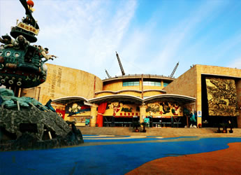 侏羅紀(jì)激流探險(xiǎn),總占地面積8600平方米,以一種時(shí)空穿插的景觀設(shè)計(jì)手法,將五種八只侏羅紀(jì)時(shí)期的恐龍置身于虛幻的遠(yuǎn)古村落中。載客古船,沿210米長,15米高的水道激流急下,沿途中,一只高9米,長19.8米,重約8噸的亞洲最大的機(jī)械恐龍“巨無霸”,不時(shí)的向沖刺在激流中的游人搖頭擺尾,吼叫或噴水,載客古船激起的25米高的巨浪。 旅游船