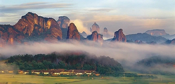 丹霞山風(fēng)景名勝區(qū),位于廣東省韶關(guān)市東北側(cè)的仁化縣,是南嶺南麓的一個(gè)山間盆地,總面積292平方公里。丹霞山由紅色砂爍巖構(gòu)成,以赤壁丹崖為特色,因"色如渥丹,燦若明霞"得名。地質(zhì)學(xué)家以丹霞山為名,將這一地貌命名為“丹霞地貌”。丹霞山是丹霞地貌命名地,是全球發(fā)育最典型、類型最齊全、造型最豐富、景觀最優(yōu)美的丹霞地貌集中分布區(qū),在“中國(guó)最美的丹霞地貌”評(píng)比中被中國(guó)國(guó)家地理、中央電視臺(tái)等聯(lián)合評(píng)選為第一名。