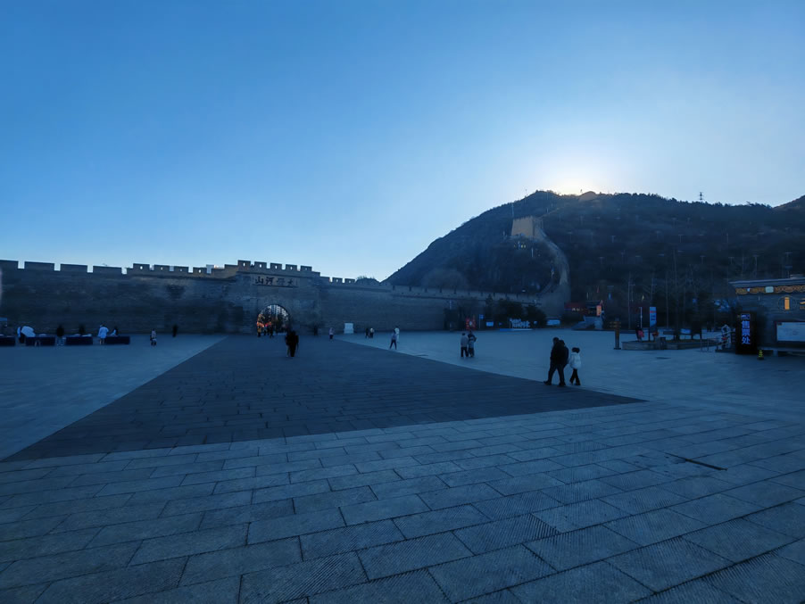 - 西境門廣場觀景臺(tái)廣角鏡頭框住長城。