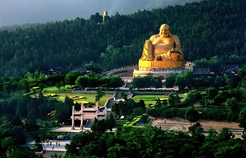 - 深度路線:北門(mén)→十八羅漢→臥佛→興國(guó)禪寺→千佛崖→觀音園→萬(wàn)佛洞→唐槐亭→“齊煙九點(diǎn)”坊→云徑禪關(guān)→彌勒勝苑→西門(mén)。