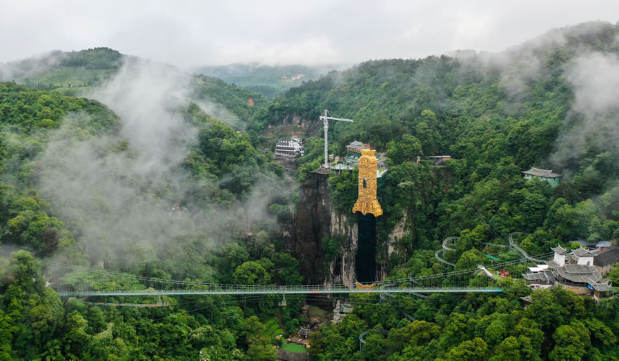 - 亮點(diǎn):全國(guó)首座雙層玻璃橋,全長(zhǎng)268米,垂直落差148米,上層透明玻璃,下層5D特效玻璃(含碎裂效果)。