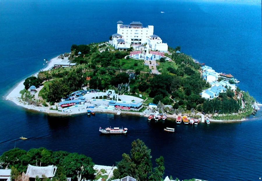 乘船登島→漢白玉觀音像→南詔行宮→本主廣場→太湖石群落→月亮宮→返程。
