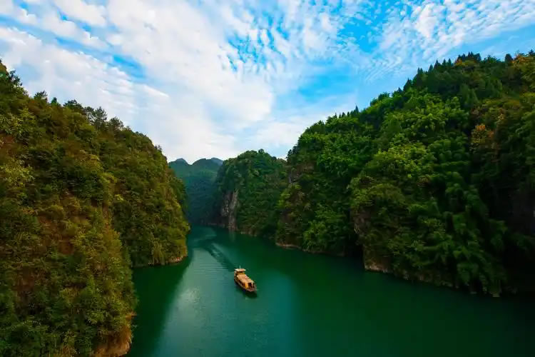 - S形河道:全程27道彎、28個“一線天”門,詩人形容“船到崖前疑無路,調(diào)轉(zhuǎn)船頭又一彎”。