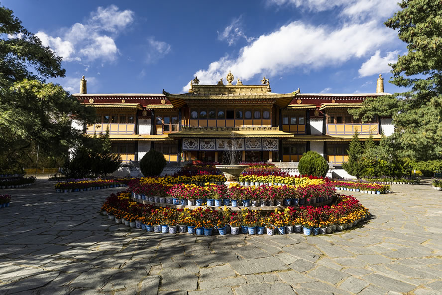 - 十三世達賴的夏季行宮,以金色屋頂和銅瓦裝飾聞名。